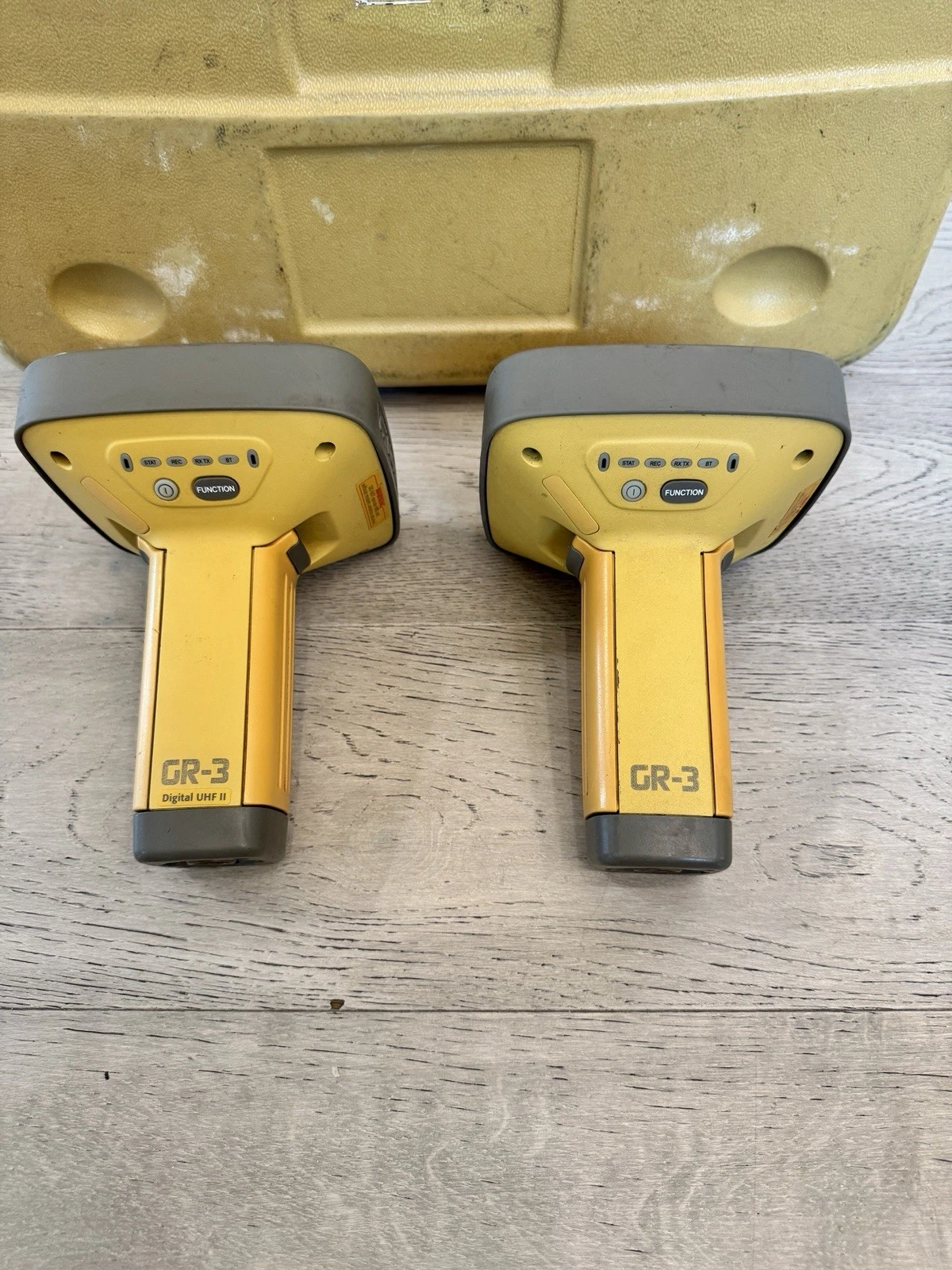 طقم جهاز GPS مساحي Topcon GR-3 بنظام GNSS ثنائي RTK مع راديو UHF (قاعدة وروفر)، مزود بوحدة تحكم TSC3 وبرنامج Survey Pro – موديل GR-3 DUHF II